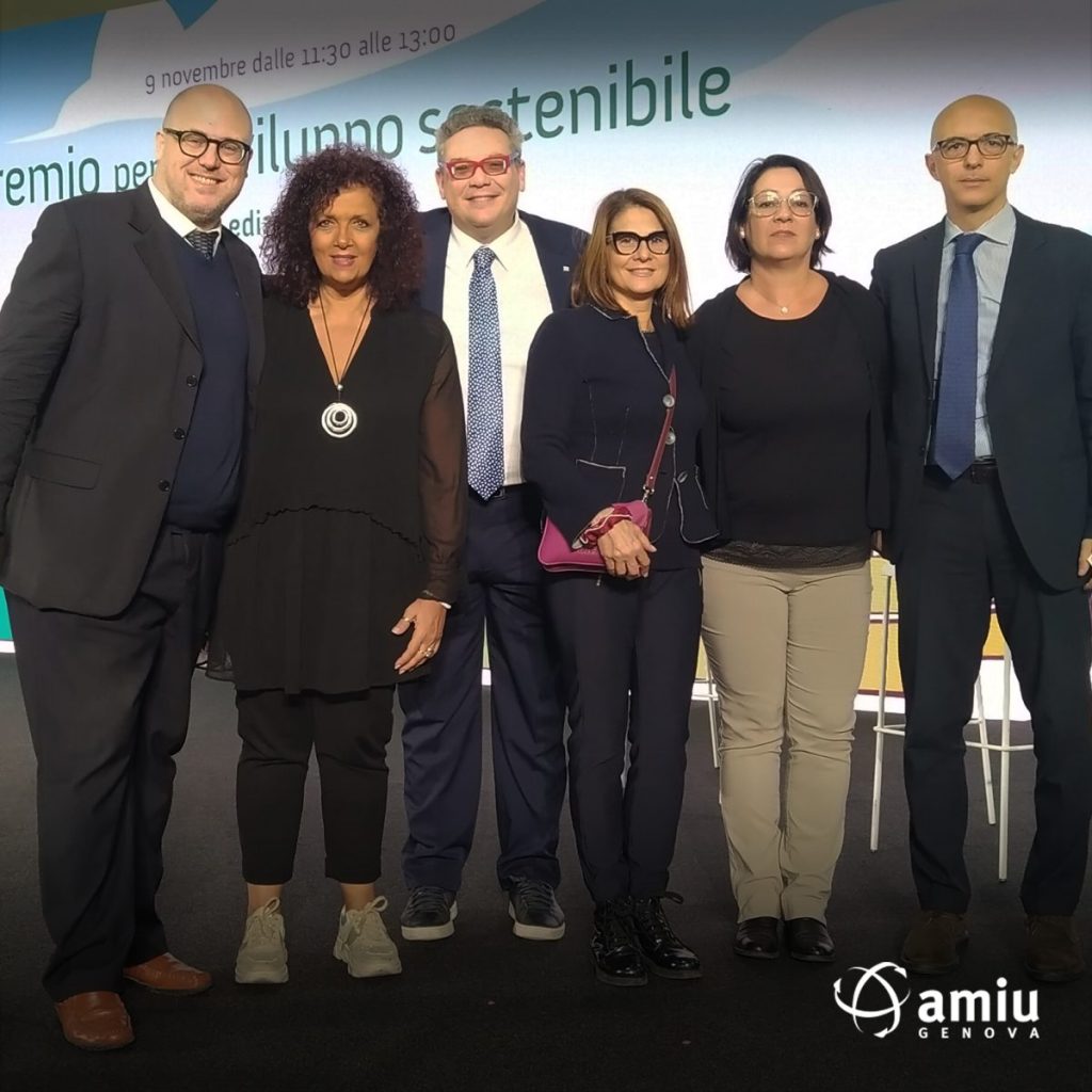 AMIU, insieme al Comune di Genova, è salita sul palco di Ecomondo per ricevere il 1° Premio per lo Sviluppo Sostenibile 2023 – settore economia circolare – promosso da Fondazione Sviluppo Sostenibile.![]()